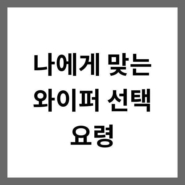 가격만 놓고 보면 사설 와이퍼가 훨씬 매력적으로 보일 수 있습니다. 하지만 장기적인 관점 에서 보면 정품 와이퍼의 내구성과 닦임 성능 은 무시할 수 없는 장점입니다. 특히 빗길 운전 시 안전과 직결 되는 부품이기에 더욱 신중한 선택이 필요합니다. "그럼 도대체 어떤 와이퍼를 선택해야 하는 거야?!"라고 고민하시는 분들을 위해 다음 섹션에서는 나에게 맞는 와이퍼 선택 요령에 대해 자세히 알려드리겠습니다. 기대해주세요!