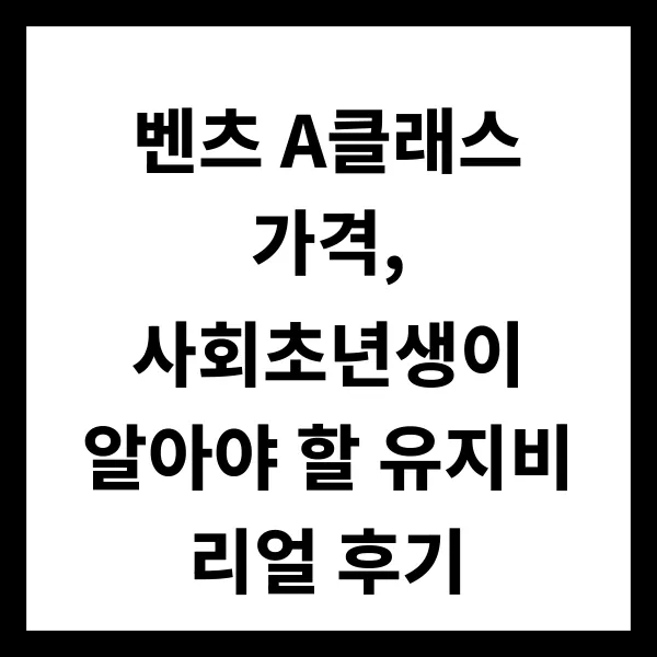 벤츠 A클래스 . 사회초년생의 드림카로 떠오르는 매력적인 선택지입니다. 하지만 고급 수입차의 이미지 이면에 숨겨진 유지비의 현실 은 젊은 세대에게 부담으로 다가올 수 있습니다. 본 포스팅에서는 벤츠 A클래스 가격 분석 을 시작으로 실제 소유주로서 경험한 유지비 에 대한 솔직한 이야기를 나누고자 합니다. 사회초년생이라면 벤츠 A클래스 구매 전 반드시 고려해야 할 사항 들을 짚어보고, 예상과 현실의 차이 를 명확히 제시하여 합리적인 선택을 돕겠습니다. 더 나아가 벤츠 A클래스 유지비 절약을 위한 실질적인 팁 까지 제공하여 드림카를 향한 꿈을 현실로 만들 수 있도록 지원하고자 합니다.