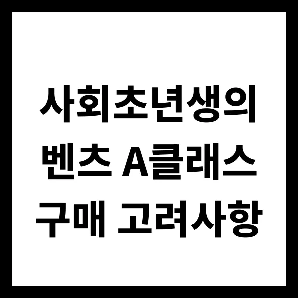 벤츠 A클래스는 젊은 감각과 고급스러움을 원하는 사회초년생들에게 매력적인 선택이지만, 구매 전 신중한 고려와 철저한 준비가 필요합니다. 위에 언급된 사항들을 꼼꼼히 따져보고, 자신의 상황에 맞는 현명한 선택을 하시길 바랍니다.