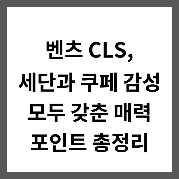 이처럼 CLS는 단순히 멋진 디자인을 넘어, 탑승자의 편의와 안전까지 고려한 진정한 프리미엄 쿠페형 세단입니다. 실용성과 편의성, 그리고 안전성까지 모두 갖춘 CLS는 당신의 드라이빙 경험을 한 단계 더 업그레이드해 줄 것입니다. 벤츠가 추구하는 가치를 그대로 담아낸 CLS, 과연 명차라는 타이틀이 아깝지 않은 차량이라고 생각합니다! 다음 섹션에서는 CLS의 퍼포먼스와 드라이빙 경험에 대해 더 자세히 알아보겠습니다. 기대해주세요!