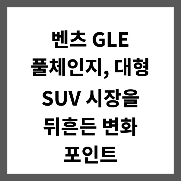 럭셔리 대형 SUV 시장의 경쟁이 치열해지는 가운데, 메르세데스-벤츠 는 GLE 풀체인지 를 통해 혁신적인 변화를 선보였습니다. GLE는 단순한 이동 수단을 넘어, 럭셔리와 퍼포먼스의 새로운 기준 을 제시하며 시장의 판도를 바꾸고 있습니다. 본 포스팅에서는 벤츠 GLE 풀체인지의 핵심적인 변화 포인트 를 심층 분석하여, 대형 SUV 시장에 미치는 영향을 고찰해보겠습니다. 디자인의 혁신부터 첨단 기술의 적용, 그리고 강력한 성능 향상 까지 GLE의 진화를 상세히 다루어 독자 여러분의 이해를 돕겠습니다. 경쟁 모델과의 비교를 통해 GLE만의 차별점 을 명확히 제시하여, 대형 SUV를 선택하는 안목을 높여드리고자 합니다.