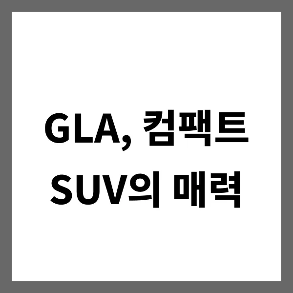 GLA는 단순한 이동 수단을 넘어, 운전자의 라이프스타일을 더욱 풍요롭게 만들어주는 특별한 존재입니다. 도심 속 데일리카로서의 실용성은 물론, 주말 레저 활동까지 완벽하게 소화할 수 있는 GLA의 매력에 빠져보세요! 컴팩트 SUV를 고민하고 있다면, GLA는 절대 후회하지 않을 선택 이 될 것입니다. GLA의 매력은 경험해 본 사람만이 알 수 있습니다! 세련된 디자인, 뛰어난 성능, 첨단 기술의 완벽한 조화! GLA와 함께라면 당신의 드라이빙 라이프는 더욱 특별해질 것입니다. 지금 바로 GLA를 만나보고, 컴팩트 SUV의 새로운 기준을 경험해보세요! 더 이상 무슨 말이 필요할까요? GLA, 그 자체로 완벽한 컴팩트 SUV의 정석입니다. GLA를 통해 당신의 드라이빙 라이프를 한 단계 업그레이드해보세요! 후회하지 않을 선택이 될 것입니다. GLA, 컴팩트 SUV의 새로운 기준을 제시합니다. 당신의 특별한 드라이빙을 위한 최고의 파트너, GLA와 함께하세요!