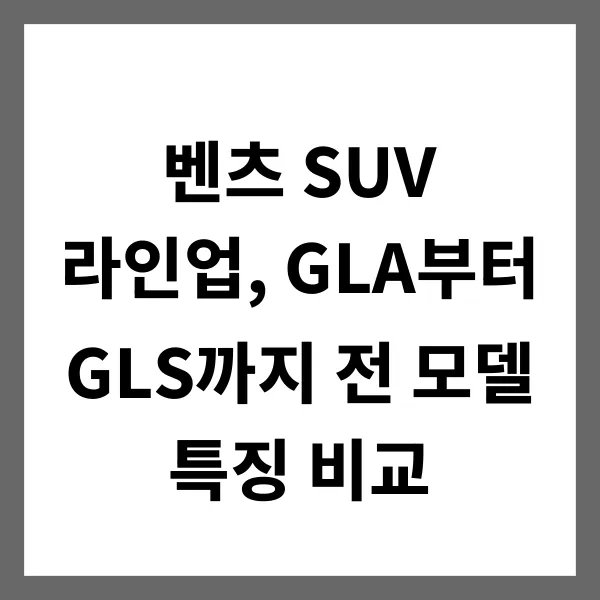 본 포스팅에서는 GLA, GLC, GLE, GLS 등 벤츠 SUV 전 모델의 특징 을 심층적으로 비교 분석하여, 여러분의 라이프스타일에 가장 적합한 모델을 선택하는 데 도움 을 드리고자 합니다. 각 모델의 디자인, 성능, 편의사양 등을 면밀히 살펴보고, 프리미엄 SUV 시장의 선두주자 인 벤츠의 진면목을 확인해 보시기 바랍니다.