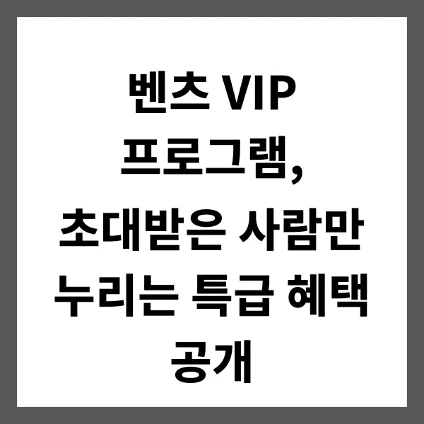 자, 이쯤 되면 벤츠 VIP 프로그램에 대한 궁금증이 더욱 커지셨을 겁니다! 과연 어떤 기준으로 VIP 고객을 선정하는지, 어떻게 하면 이 특별한 프로그램에 초대받을 수 있는지 궁금하시죠? 다음 섹션에서는 벤츠 VIP 프로그램의 초대 기준과 조건, 그리고 구체적인 혜택에 대해 더 자세히 알아보도록 하겠습니다. 기대하셔도 좋습니다!